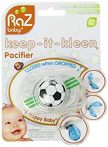 The RaZbaby Keep-It-Kleen Pacifier is designed to keep your baby's pacifier clean and hygienic. With its unique self-cleaning feature, the pacifier's nipple automatically retracts into the protective case when dropped, ensuring no dirt or germs can get on it. Suitable for infants, this pacifier helps soothe and calm your baby while simplifying your parenting experience.