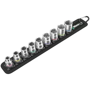 This 9-piece Wera socket set features high-quality metric sockets designed for easy storage and quick access. The set includes a convenient storage belt, making it ideal for professionals and DIY enthusiasts who require reliable tools on the go.