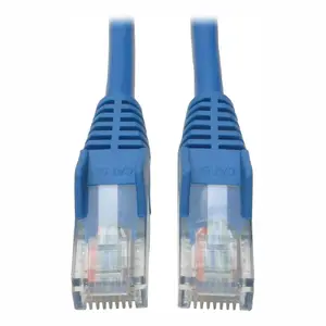 Tripp Lite's 7-ft. (2.13 m) blue snagless category 5e (Cat5e) patch cable has 2 snagless RJ45 molded male connectors featuring integral strain relief. The cable is manufactured from PVC 4-pair stranded UTP and is rated for 350MHz/1Gbps communication. All cables are offered in a variety of lengths and colors for all category 5 (Cat5) and 5e cabling needs. Standard category 5e patch cables are also available.