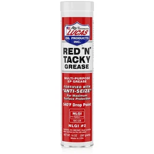 Lucas Oil Red N Tacky Grease is a premium quality, smooth, tacky grease designed for a variety of applications. Packaged in a 14 oz tube, this lithium complex grease is fortified with rust and oxidation inhibitors to ensure durability and long-lasting performance.