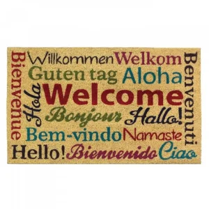 Welcome your guests with style and warmth using our Multi-Lingual Welcome Mat. Crafted from high-quality coir, this mat not only helps keep your entrance clean by trapping dirt and debris but also greets visitors in multiple languages. Perfect for homes with diverse cultures or those who simply want to add a touch of fun to their entryway. Enhance your home's curb appeal while making everyone feel at home!