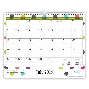 This vibrant wall calendar is perfect for teachers and classrooms. Featuring a colorful dot theme, it runs from August 2023 to July 2024, providing an organized overview of the academic year.