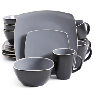 Gibson 102266.16RM Soho Lounge 16-Piece Matte Dinnerware Set, Gray/Black