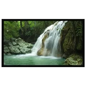 The AccuScreens Fixed SoundScreen is designed for optimal viewing in home theaters, conference rooms, and educational settings. Featuring a sleek black velvet-covered aluminum frame, this projection screen can be easily assembled and offers a luxurious, non-glare surface that enhances image quality. The SoundScreen surface is acoustically transparent, ensuring that sound quality is not compromised during use.