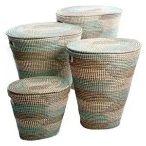 Clean up clutter with the eco-friendly Grayton 4-piece Seagrass Basket Set. With four nesting baskets, this set is the perfect organization item for the environmentally-conscious home. These versatile baskets offer a combination of renewable material and stylish design. The baskets measure 21.65 x 16.15 x 24.75, 19.635 x 14.5 x 21.65, 17.35 x 11.75 x 20.15 and 13.75 x 9.75 x 12.15. - round design - mixed colors - seagrass wickerwork construction - wicker lid