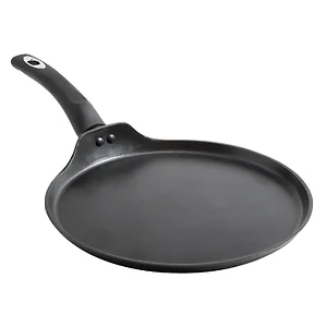 The Oster Cuisine Allston Pancake Tawa Pan is made of Aluminum which allows for even heat distribution for perfect pancakes or crepes. The non-stick cooking surface makes it great for low fat cooking and easy clean up. The heat resistant handle is made for comfort and safety.
