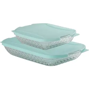 This beautiful basket-weave embossed serveware set seamlessly transitions from oven to table, making it perfect for entertaining. With its popular on-trend colors, it's not just stylish but also functional. Made from tempered tough glass, this set is designed to withstand the rigors of daily use.