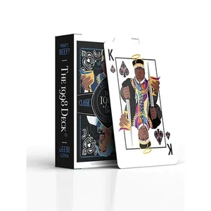 This unique deck celebrates the rivalry and legacy of legendary hip hop artists with stunning artistry. Featuring The Notorious B.I.G. as the King of Spades, Lil Kim as the Queen, and Tupac as the King of Hearts, this deck is perfect for card enthusiasts and hip hop aficionados alike. Play your favorite card games while honoring the gods of rap!