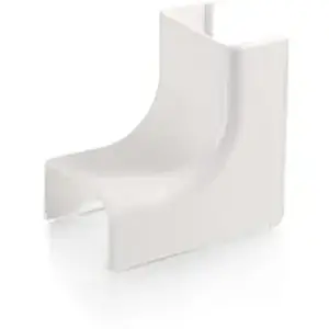 This internal elbow is the ideal solution for making a right angle turn and connecting two pieces of raceway. The internal elbow attaches to the end of two pieces of raceway and allows cabling to make a right angle turn. Available in standard colors which match the raceway, this internal elbow features a smooth plastic finish which is paintable with latex paint and is designed to work with 2900 series raceway.