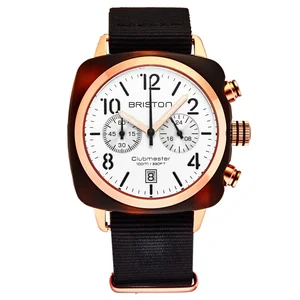 The Briston Men's Clubmaster Classic features a stunning white dial paired with a tortoise shell acetate case. This chronograph watch combines elegance and functionality, making it perfect for both casual and formal occasions.
