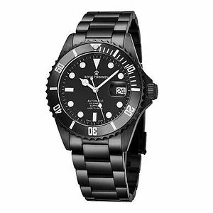 Revue Thommen 17571.2177 Diver Black Dial Stainless Steel Swiss Automatic Watch Revue Thommen 17571.2177 Diver Watch includes box, case, paperwork and 30 day returns. The Revue Thommen 17571.2177 Diver Black Dial Stainless Steel Swiss Automatic Watch features a Brushed and polished black PVD coated stainless steel case, Polished black PVD coated stainless steel, unidirectional rotating bezel and a black dial. Features: Brand: Revue Thommen Model number: 17571.2177 Case Shape: Round Dial window material type: Scratch Resistant Sapphire Display Type: Analog Clasp: Deployment Case material: Stainless steel Case diameter: 42 millimeters Case Thickness: 12 millimeters Band Material: Stainless Steel Band length: Men's Standard Band width: 21 millimeters Band Color: Black Dial color: Black Bezel material: Stainless steel Bezel function: Unidirectional Movement: Automatic Calendar: Date position at 3 o'clock position Water resistant depth: 300 meters Made in Switzerland UPC: Revue Thommen 17571.2177 Diver MSRP: $2700