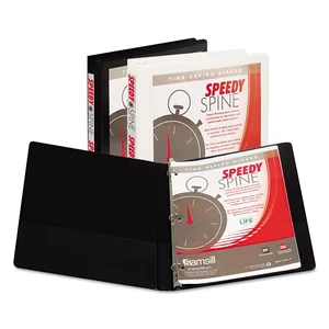 The Speedy Spine Heavy-Duty Round Ring View Binder is designed for efficient organization and durability. Featuring a 3-inch capacity, it can hold a significant number of sheets, making it ideal for presentations, reports, or school projects. The binder is suitable for standard 11 x 8.5 inch paper sizes and comes in a sleek white color.