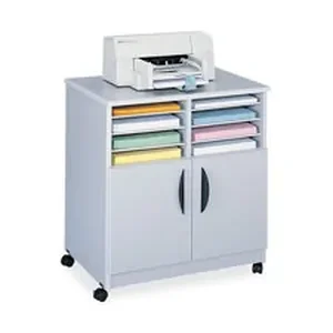 The Gray Mobile Machine Stand with Sorter is designed to provide a robust and functional workspace for your office machines. Featuring a spacious countertop, it fits most standard office devices while offering additional storage options. With adjustable sorter shelves and a concealed storage compartment, this machine stand combines efficiency with a sleek design.