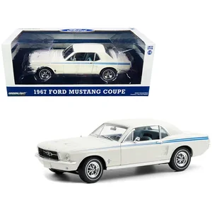 The 1967 Ford Mustang Coupe boasts a stunning Wimbledon White finish accented with Scotchlite Blue stripes, making it a standout replica in any collection. This diecast model car captures the essence of the iconic Indy Pacesetter Special, featuring intricate details and high-quality craftsmanship.