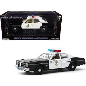 This exquisite 1/24 scale diecast model car features the iconic 1977 Dodge Monaco, famously recognized from the movie "The Terminator" (1984). Modeled after the classic Metropolitan Police vehicle, this limited edition diecast is a must-have for collectors and movie enthusiasts alike.