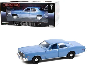 Introducing the 1977 Plymouth Fury in Pearl Steel Blue, a diecast model car that captures the essence of Detective Rudolph Junkins' "Christine" from the iconic 1983 movie. This stunning 1/24 scale replica by Greenlight is a must-have for collectors and movie enthusiasts alike.