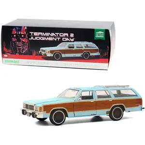 Introducing the stunning 1979 Ford LTD Country Squire diecast model car, featuring a classic light blue color with striking wood grain paneling. This collectible model, inspired by the iconic vehicle from "Terminator 2: Judgment Day" (1991), is a must-have for fans and collectors alike. With its intricate details and high-quality construction, this 1/18 scale model truly captures the essence of the original car, making it an excellent addition to any display.