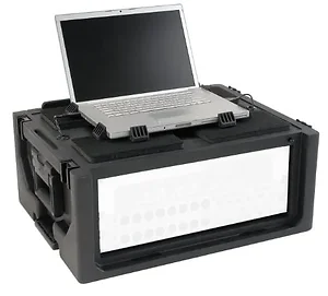 The Studio Flyer Roto Hard Case is designed for musicians and sound professionals looking for a reliable way to transport and protect their gear. This robust hard case features a 2U rack space combined with a laptop compartment, all mounted on wheels for easy mobility.