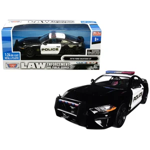 This 1:24 scale diecast model car features the iconic 2018 Ford Mustang GT, designed in a striking black and white police livery. Perfect for collectors and enthusiasts, this detailed replica highlights the car's authentic police markings.