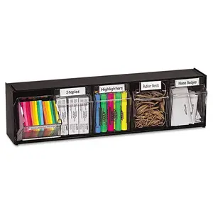 The TILT BIN Interlocking Multi-Bin Storage Organizer is perfect for enhancing your storage space. Featuring three distinct sections, this organizer allows you to categorize and access your items effortlessly. Designed in a sleek black and clear finish, it measures 23.63" X 7.75" X 9.5", making it an ideal addition to any room.