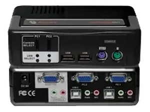 The Avocent SwitchView Multimedia KVM Switch allows you to manage multiple computers via a single console. It supports both USB and PS/2 connections, streamlining your workspace and enhancing efficiency. With advanced audio capabilities, you can connect speakers and a microphone, making it ideal for multimedia applications.