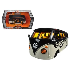 Experience the nostalgia of the iconic Volkswagen Van Samba with this exquisite diecast model car. Designed in a striking black and beige color scheme, this 1:25 scale replica captures the charm and detail of the classic vehicle, making it a must-have for collectors and enthusiasts alike.