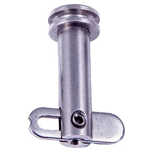 This drop-nose pin is manufactured from 316 stainless steel and barrel-finished for a smooth, high-shine surface finish. It has a spring-loaded mechanism that positively locks the pin in either the open or closed position. The standard head features an annular groove for attachment of a retaining wire if required for larger bespoke pins and retaining wires.