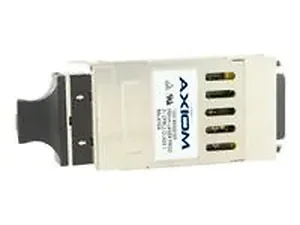 The Axiom 1000BASE-SX GBIC transceiver module is designed for high-performance networking. It supports up to 550 meters of multi-mode fiber link spans and complies fully with the IEEE 802.3z 1000BaseLX standard. This hot-swappable module is compatible with a variety of Cisco products and can be interchanged with other transceiver types in the same network, ensuring flexibility and ease of use.