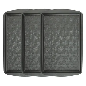 • Set of three 15 in. x 10 in. baking surface sheets (17.25 in. x 11.125 in. outer dimension including handles and edge) ;• Embossed design strengthens baking sheet while increasing airflow for even baking ;• Non-stick coating ensures quick release and easy cleanup ;• Made of durable non-stick coated steel ;• Fast and even heat distribution ;• Hand washing is recommended ;• Suitable for all baking temperatures (not suitable for broiler) ;• Taste of Home(R) Test Kitchen approved;