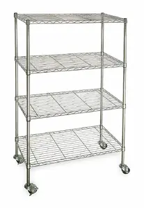Grainger 3TPA5 Wire Shelving Unit: 48 in x 24 in x 68 in, Dry, Split Sleeve, 4 Shelves, Silver