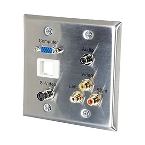 C2g 40964 DOUBLE GANG HD15 VGA + 3.5MM + S-VIDEO + RCA AUDIO/VIDEO + KEYSTONE WALL PLATE -