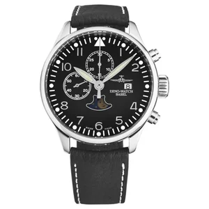 Zeno 4100-I1 Men's 'Vintage' Chrono 7768 Limited Edition Black Dial Black/White Leather Strap Watch Zeno 4100-I1 Men's 'Vintage' Chrono 7768 Limited Edition Black Dial Black Leather Strap Watch features a stainless steel 44mm case, with a fixed bezel, a black dial and a scratch resistant sapphire crystal. The 22mm leather band is fitted with a tang clasp. This beautiful wristwatch, powered by Swiss automatic movement. This watch has a water resistance of up to 1000 feet/300 meters, suitable for recreational swimming, not for diving and snorkeling. Features: Brand: Zeno Model number: 4100-I1 Case Shape: Round Dial window material type: Scratch Resistant Sapphire Display Type: Analog Clasp: Tang Case material: Stainless steel Case diameter: 44 millimeters Case Thickness: 16 millimeters Band Material: Leather Band length: 8 millimeters Band Width: 20 millimeters Band Color: Black Dial color: Black Bezel material: Stainless Steel Bezel function: Fixed Movement: Automatic Water resistant depth: 300 meters UPC: 7640172574751 Zeno 4100-I1 MSRP: $ 2650