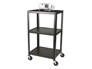 This durable A/V cart stands at 42 inches tall and features three sturdy shelves, making it perfect for accommodating various audio-visual equipment. Its sleek black powder-coated steel frame ensures long-lasting use, while the 5-inch locking casters allow for easy mobility and stability. Ideal for classrooms, offices, or presentations, this cart supports up to a 20-inch diagonal display.