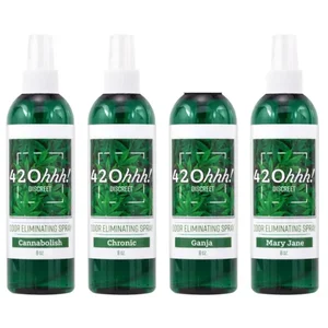 Introducing the 420hhh! Natural Odor Eliminator Spray Collection. This four-bottle set is designed to effectively eliminate unwanted smoke and odor, specifically catering to cannabis enthusiasts. Our specially formulated blend offers a discreet and reliable solution for maintaining a pleasant atmosphere in your home, car, or personal space.