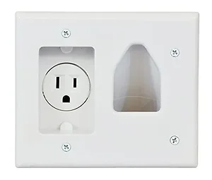 The DataComm 2-Gang Recessed Cable Plate with Built-in Power Outlet offers a sleek solution for managing wiring and low-voltage cables behind your flat panel TVs, audio/video equipment, and more. This essential home theater accessory ensures a clean, professional installation.