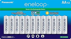 Panasonic Eneloop are the way to go if you are looking for long lasting, Low Self-Discharge AA batteries. Great for home and workplace electronics, these batteries feature an impressive 2000mAh capacity that keeps them running longer than competing rechargeable batteries. Their low self-discharge nature allows them to hold a charge for extended periods of time while not in use, maintaining 70 percent of their total capacity for up to 10 Years! Eneloop rechargeable batteries remain healthy for up to 2100 Charge Cycles and are a great choice for saving energy and going green. This pack contains 12 AA-sized Eneloop batteries and comes shrink wrapped to provide the best value possible.