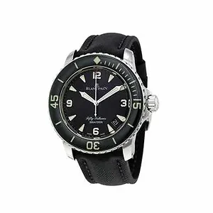 Blancpain 5015-1130-52B Fifty Fathoms Black Fabric Men's Automatic Watch The Blancpain 5015-1130-52B Fifty Fathoms Black Fabric Men's Automatic Watch features a 45mm black stainless steel case with saphhire crystal glass protecting the luxurious black dial. A unidirectional black stainless bezel adds style to this highly sophisticated timepiece. It is powered by Blancpain Calibre 1315 automatic movemnt and is water resistant to 300 meters. Features: Brand: Blancpain Series: Fifty Fathoms Model number: 5015-1130-52B Case Shape: Round Dial window material type: Scratch Resistant Sapphire Display Type: Analog Clasp: Deployment with push button Case material: Stainless steel Case diameter: 45 millimeters Case Thickness: 15.5 millimeters Band Material: Fabric Band length: Men's Standard Band Width: 23 millimeters Band Color: Black Dial color: Black Bezel material: Stainless Steel Bezel function: Uni-directional Rotating Coin Edge Movement: Automatic Water resistant depth: 300 meters Calendar: Date UPC: 7613297301281 Blancpain 5015-1130-52B MSRP: $15000