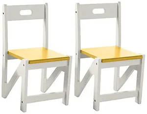 Introducing the ZigZag Stacking Chairs, a vibrant and practical solution for your child's playroom or bedroom. This set of two yellow chairs is designed for durability and safety, featuring sturdy wooden construction that can withstand everyday use.