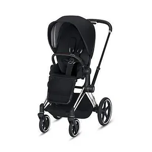 CYBEX Priam 3-in-1 Travel System Chrome with Black Details Baby Stroller – Premium Black THE PRIAM Individualized Mobility With the PRIAM, CYBEX offers a complete 3-in-1 travel system to parents. One frame enables three different modes of use: as a travel system with matching carry cot or one of our award-winning CYBEX infant car seat, and later as a luxurious parent-facing or forward-facing stroller. The NEW PRIAM has been redesigned with high-quality materials including leather-look details, premium fabric and finishes. Features: One-hand fold into a compact self-standing position in seconds One-hand recline to a near flat position while facing either direction Reversible seat unit can be positioned to be forward or parent facing using memory buttons Adjustable leather-look handlebar adapts to users of all heights Leather-look Bumper Bar opens to the side for easy access to the seat Lockable swivel front wheels for stability on uneven terrain All-wheel suspension system for a smooth ride Never-flat foam filled rubber wheels provide durability Large shopping basket (11 lb. capacity) Adjustable leg rest XXL Sun Canopy with peek-a-boo window and UPF 50+ rating to protect baby from the sun’s rays Seat aligns with standard table heights, making dining out convenient Convenient two-wheel mode for strolling over loose terrain like sand and up staircases Build your own travel system using a PRIAM Carry Cot and CYBEX infant car seat Includes rain cover, cup holder, bumper bar and car seat adapters Specifications: Brand: Cybex Model: Priam Model Number: 519003529 Frame in Chrome with black details Color in Premium Black Assembled Dimensions (seat w/frame): 32.5-36.4†L x 23.6†W x 38-42.1†H Folded Dimensions (seat w/frame):37.4†L x 23.6†W x 15.7†H Weight: 28.1 lbs. Use from Birth (with a Priam Carry Cot or CYBEX Infant Car Seat) up to 55 lbs. UPC: 4058511706443