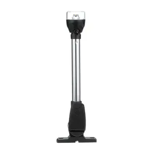 This innovative all-around navigation light features a 12" aluminum pole with a black vertical composite base and adapter. It is designed for easy installation and reliable visibility on the water.
