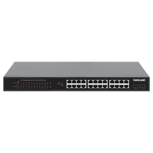 - IEEE 802.3at/af (PoE+/PoE) Compliant, PoE Power Budget of 370 W, Two 1G SFP Open Slots, 19" Rackmount- Provides up to 24 PoE network devices with power and data- Two 1G small form-factor pluggable (SFP) module slots- PoE power budget of 370 watts- Power output up to 30 watts per port- Manual VLAN mode to isolate ports 1 to 24 from each other while allowing them to communicate with SFP uplink ports 25 and 26- Manual Flow Control Off mode to disable the Gigabit Ethernet switch's flow-control function- 52 Gbps switch fabric- 10/100/1000 auto-sensing ports that automatically detect optimal network speeds- Complies with the IEEE 802.3az (Energy Efficient Ethernet EEE) specification- Green Ethernet power-saving technology that deactivates unused ports and adjusts power levels based on the cable length- Saves installation costs by delivering data and power over existing network cables- Supports IEEE 802.3at and IEEE 802.3af-compliant PoE devices (e.g., wireless access points, VoIP phones, IP cameras)- Supports IEEE 802.3at/af detection and short circuit, overload and high-voltage protection- Auto-MDIX and NWay auto-negotiation support on all RJ45 ports- Supports jumbo frames up to 9.2 kBytes- All RJ45 ports with Auto-MDIX (auto uplink) support- Store and forward switching architecture- Supports 802.3x flow control for full duplex mode and collision-based backpressure for half duplex mode- Supports 8k MAC address entries with Auto-learning and Auto-aging- 512 kBytes buffer memory- Two high-volume cooling fans to ensure perfect ventilation- Includes 19" rackmount brackets- Fully NDAA-compliant