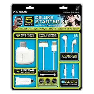 Xtreme 56501 5-Piece USB Car Charger & Earbuds Kit for Devices