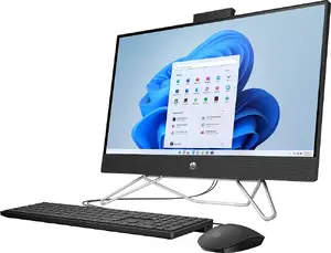 This refurbished HP 23.8-inch All-in-One Desktop PC is designed for performance and convenience. Featuring a sleek jet black finish, it combines style with powerful functionality.