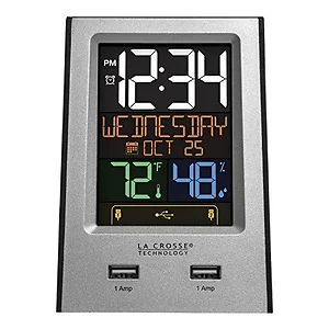 Lacrosse Technology 617-1614 Color Digital LCD Alarm Clock with Dual USB Charging Ports