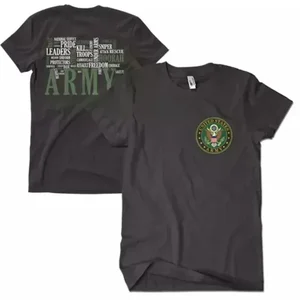 Introducing the Army Words Black 2-Sided T-Shirt in size 3XL, crafted from durable materials for comfort and style. This shirt features a bold screen-printed design, showcasing your allegiance with pride.