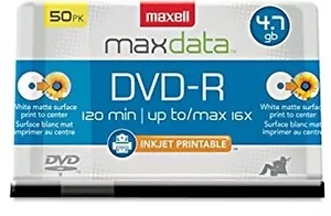Maxell 638022 DVD Recordable Media - DVD-R - 16x - 4.70 GB - 50 Pack Spindle - Bulk - 120mm - Printable - 2 Hour Maximum