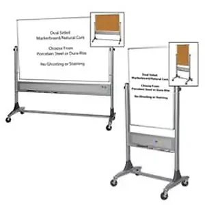 Enhance your presentations and meetings with the Platinum Mobile Reversible Board. Designed for versatility, this board features a magnetic porcelain surface on one side and natural cork on the other, allowing for effortless writing and pinning. Its 360-degree rotation and locking mechanism provide easy use and stability, making it an essential tool for any professional environment.