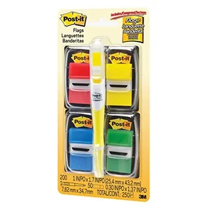 Post-it Flags Value Pack includes 200 flags with a Post-it Flag Plus Highlighter. Flags make it simple to mark your place, flag or highlight important information. Use them to draw attention to critical items, index, file or color-code. Eye-catching, colorful flags are easy to spot and have space to write. Removable adhesive allows the attention-getting 1" flags to stick securely, reposition and remove cleanly. The handy detachable cartridges can be used as a stand-alone dispenser or placed in a desktop dispenser/organizer with a built-in Post-it Flags dispenser. The Flag Plus Highlighter includes a comfort grip and a built-in flag dispenser with small flags for on-the-go flagging.