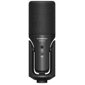 Profile USB Microphone with table stand. Includes (1) Profile USB Microphone, (1) Profile Table Stand, and (1) 1.2 m USB-C Cable