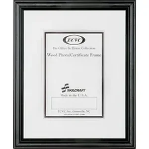 Versatile, ready-made, Style A frame works with all decors and mounts on your wall with pre-installed hangers either vertically or horizontally. Insert your award, photo or document quickly and easily. Simplistic design includes 3/4" black molding and smooth, black enamel finish. Molding is made in North Carolina of solid hardwood grown in the southeast United States, with three coats of water-based black paint and an additional semi high-gloss clear coat applied to prevent the finish from fading over time. Frame includes glass, reversible mat board (black or white), binder back, and staples.